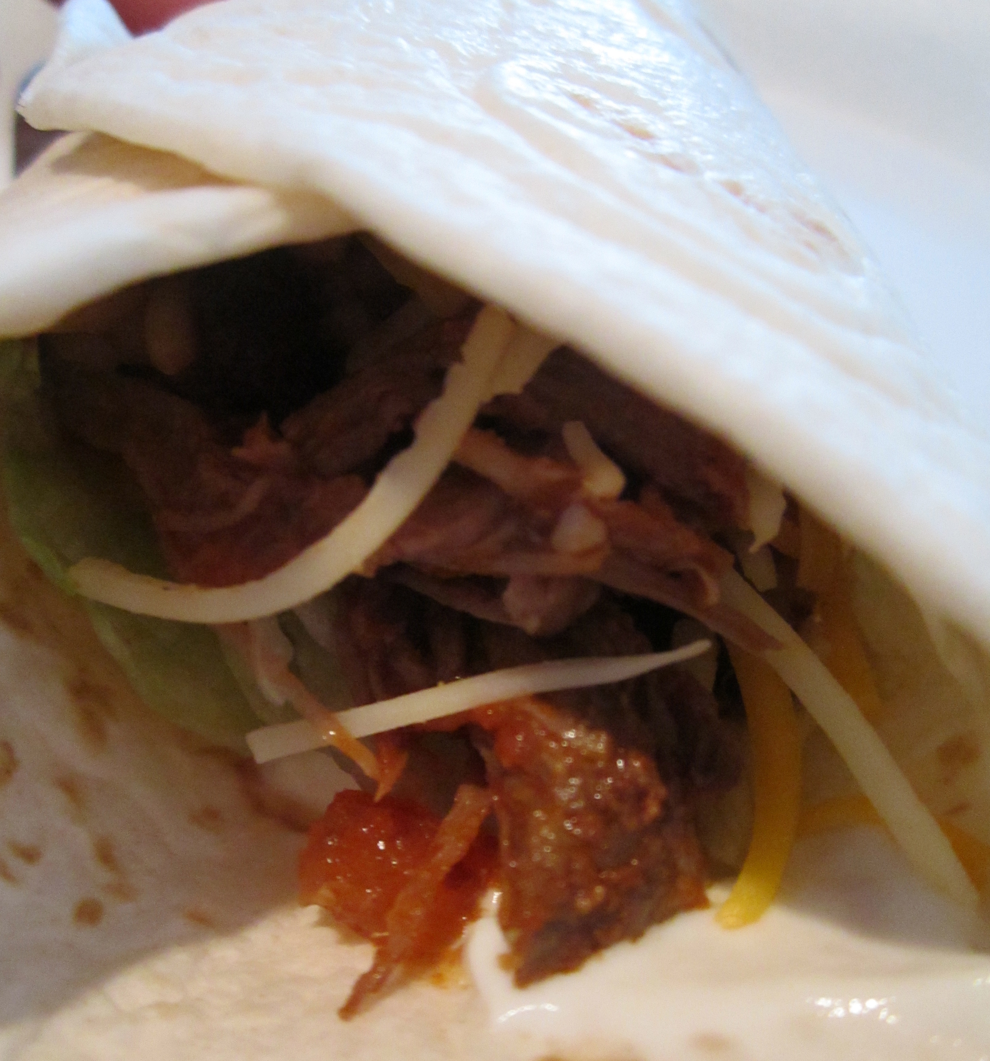 3. Half hour before serving, remove chicken and shred. Return chicken to slow cooker and stir in. Top with fresh cilantro. Add ow fat cheese and sour cream.