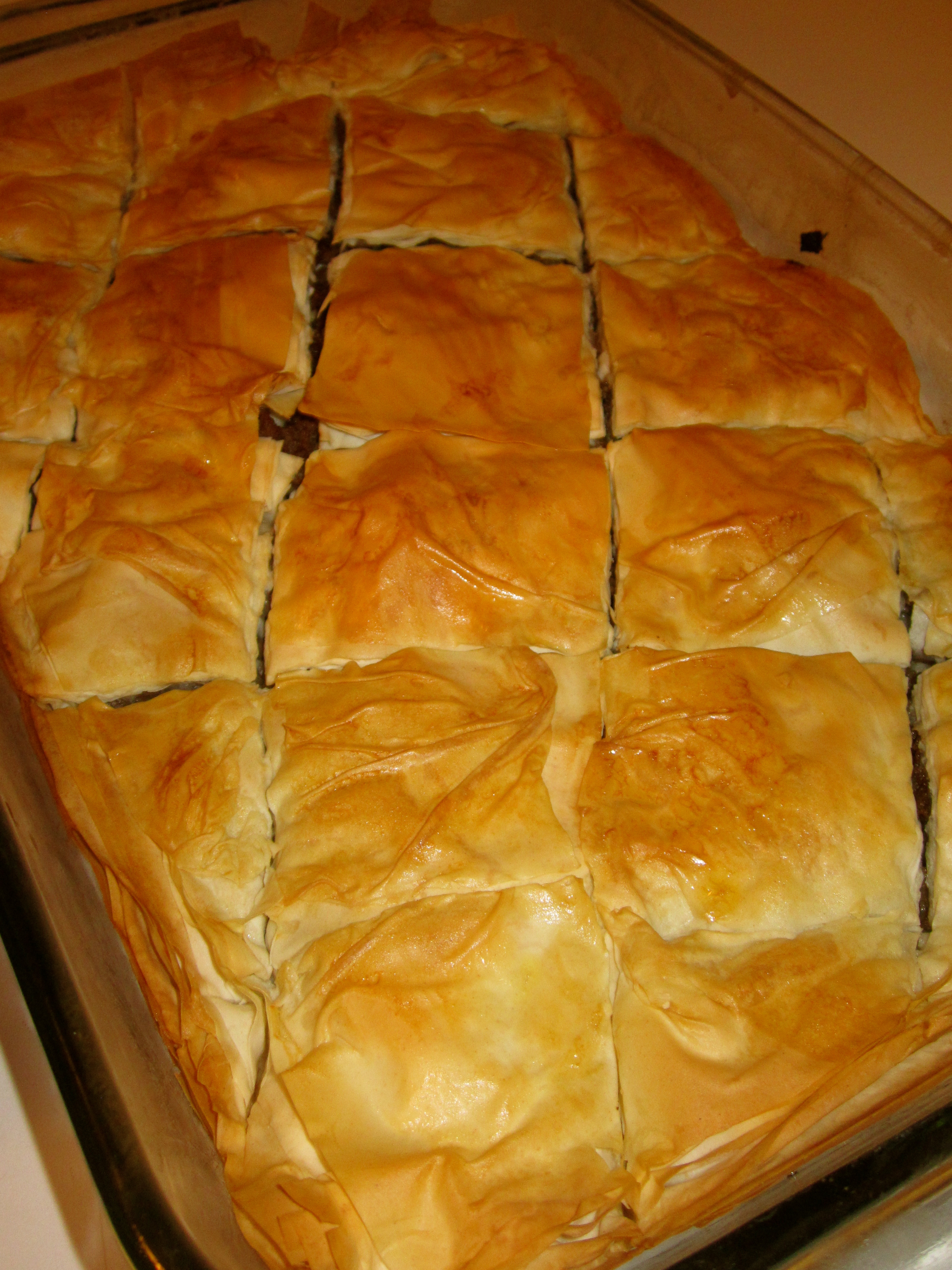 • 1 package defrosted philo dough (usually found in frozen food section)
